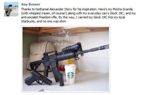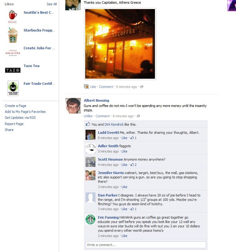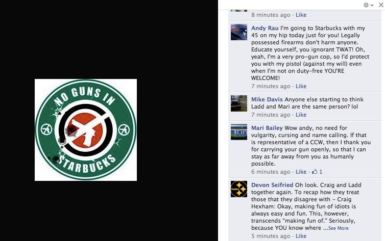 The next target on the "WAVE Lies" Facebook page was Coalition to Stop Gun Violence Director of Communications Ladd Everitt, and now the pro-gunners indulged their homophobia. First page moderator Sean Hobena, the owner of Bad Bones BBQ in Minocqua, Wisconsin, described Ladd as "an effeminate homosexual throwing a hissy fit." "After seeing his photo, there can be no doubt that he is a master of tuning meat whistles," added Grant Guess. "I thought he specialized in the Skin Flute?" asked Hobena, taking the distasteful, sophomoric joke about as far as it could possibly go.